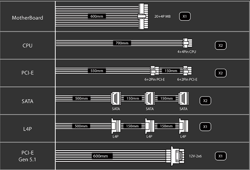 線材長度與規格根據不同硬體需求設計,確保靈活安裝和良好連接,以方便用戶選擇合適的連接方案,確保系統穩定運行。
