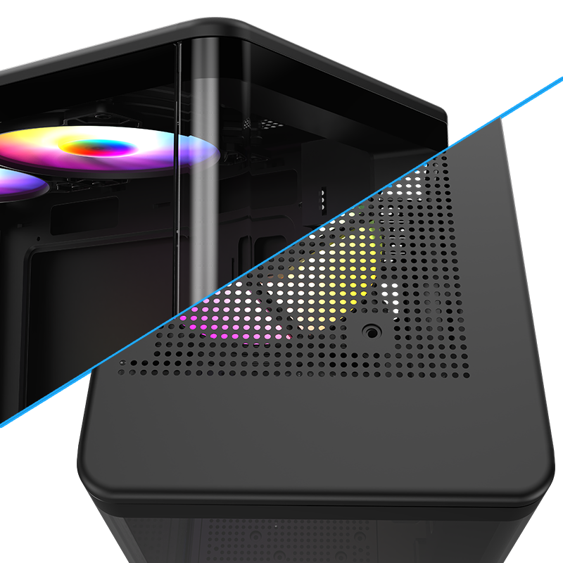 即使是緊湊身形,也能在頂部支援 240mm 水冷安裝,怎麼搭配都輕鬆駕馭。