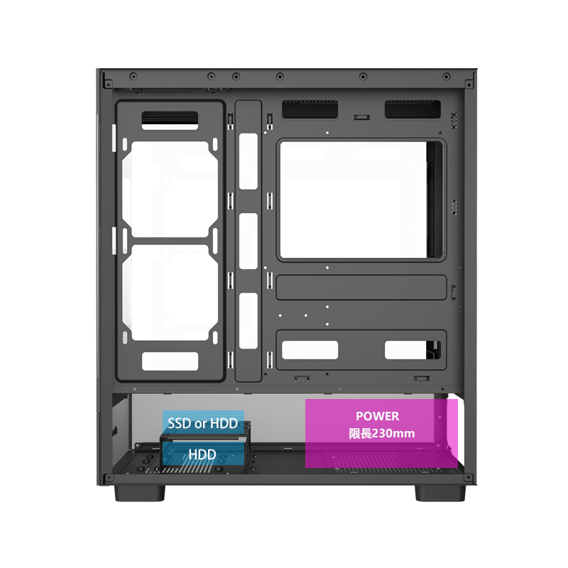 頂部加高60mm空間設計,專為安裝 360 水冷系統打造,有效避免干涉,提供更寬裕的安裝空間