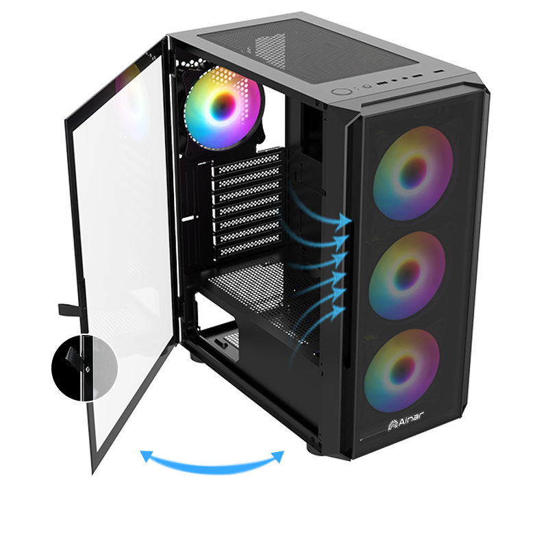 採用掀門式鋼化玻璃,讓你輕鬆欣賞內部硬體設備,便捷開關玻璃。